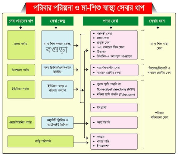 পরিবার কল্যাণ পরিদর্শিকা ও উপঃ সহঃ কমিউনিটি মেডিক্যাল অফিসারগণ ইউনিয়ন পর্যায়ে ইউনিযন স্বাস্থ্য ও পরিবার কল্যাণ কেন্দ্র থেকে মা ও শিশু স্বাস্থ্য পরিবার পরিকল্পনা এবং সাধারন সেবা প্রদান করে থাকেন। প্রয়োজনে জটিল রোগীদের উচ্চতর সেবা কেন্দ্রে প্রেরন করে থাকেন।